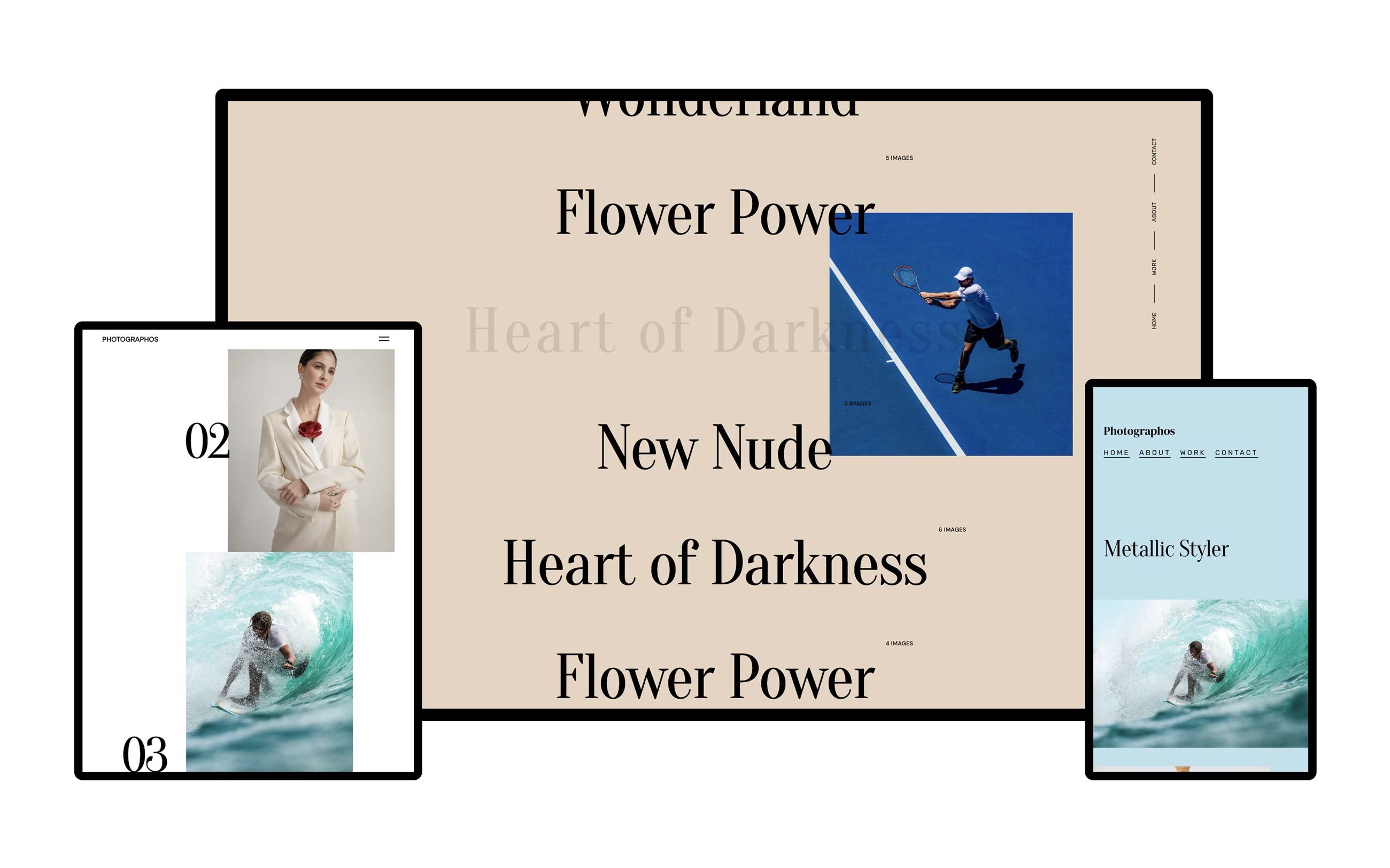 3.With Photographos, you own every inch of the page. Use full-screen images or cover sliders to showcase your photos in crisp detail.